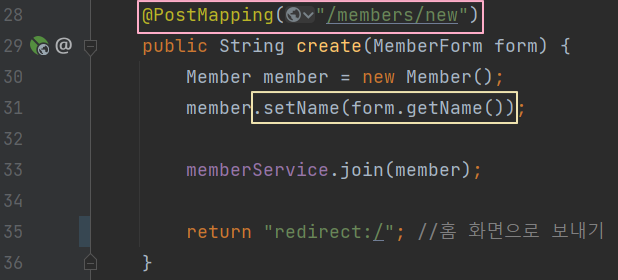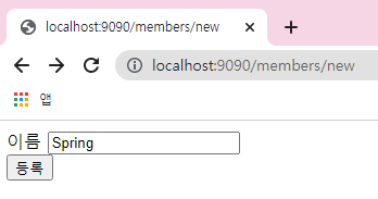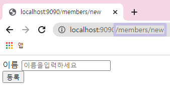 ③ 등록 버튼을 누르면 action의 /members/new URL 주소로 post 방식으로 넘어 온다