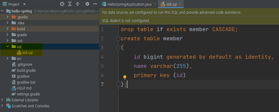 generated by default as identity: 값을 세팅하지 않고 insert 했을 때 DB가 자동으로 id값을 채워 준다