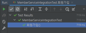 MemberServiceTest 파일을 복사 붙여넣기 하여 MemberServiceIntegrationTest 생성