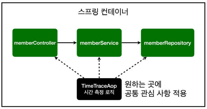 - 회원 가입, 회원 조회 등 핵심 관심사항과 시간을 측정하는 공통 관심 사항을 분리한다