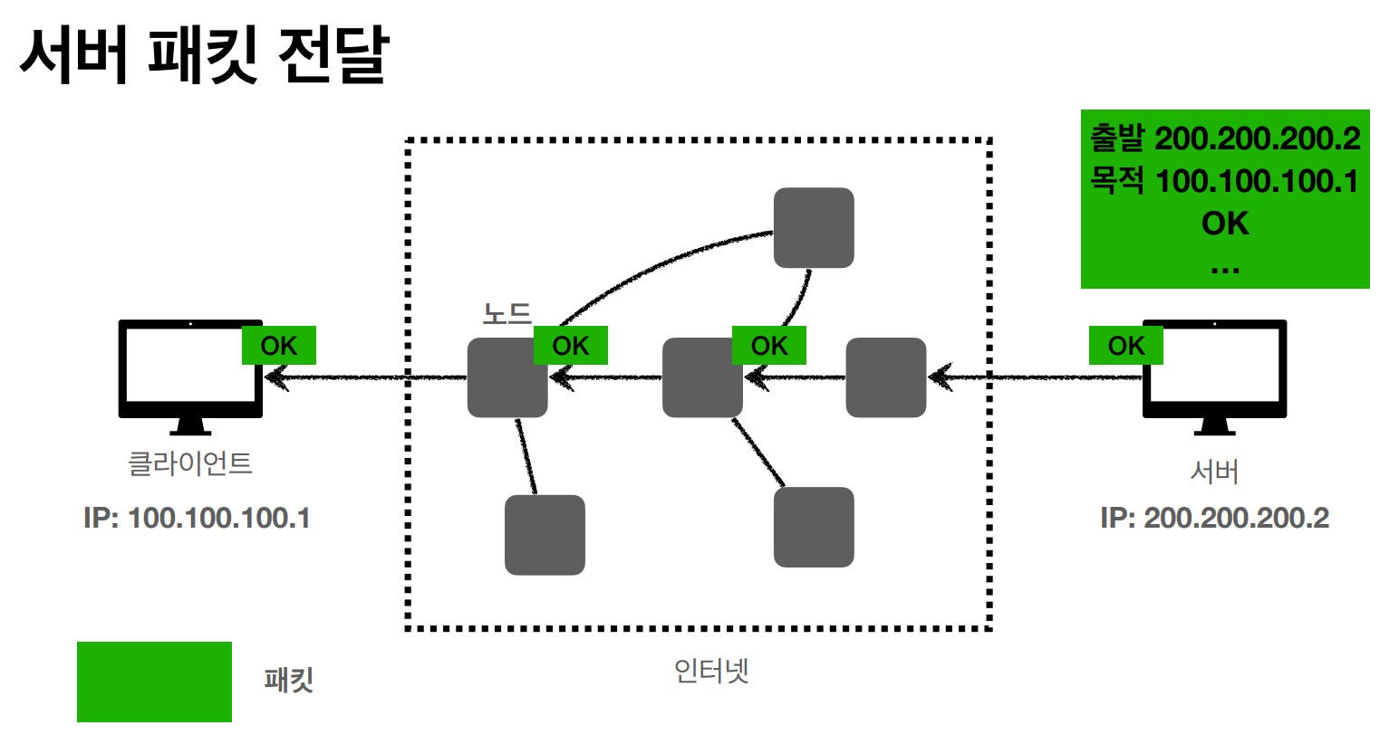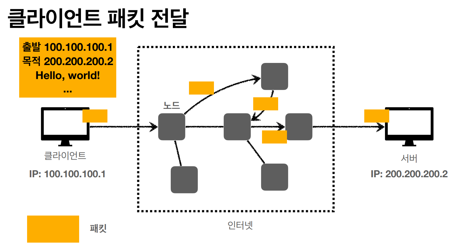 - 패킷(Packet)이라는 통신 단위로 데이터 전달