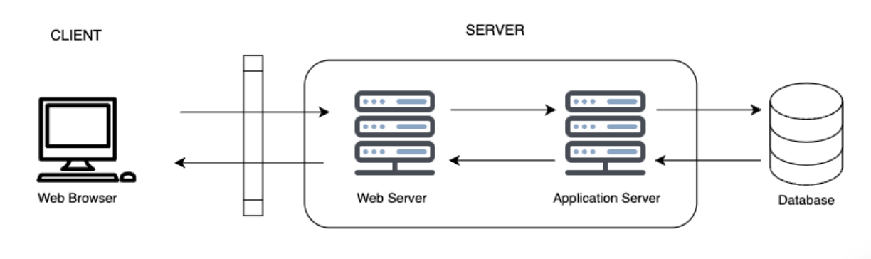 클라이언트(리소스 사용) ↔ 서버(리소스 전달) ↔ 데이터베이스(리소스 저장 공간)