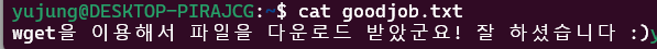 해당 디렉토리에 goodjob.txt라는 파일이 만들어졌다. 파일을 확인해 보자!