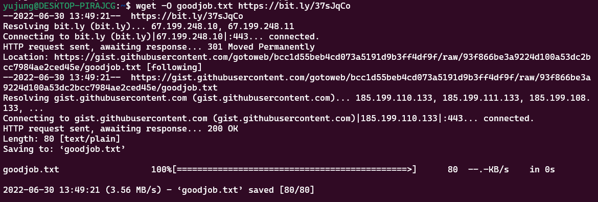wget -O goodjob.txt https://bit.ly/37sJqCo