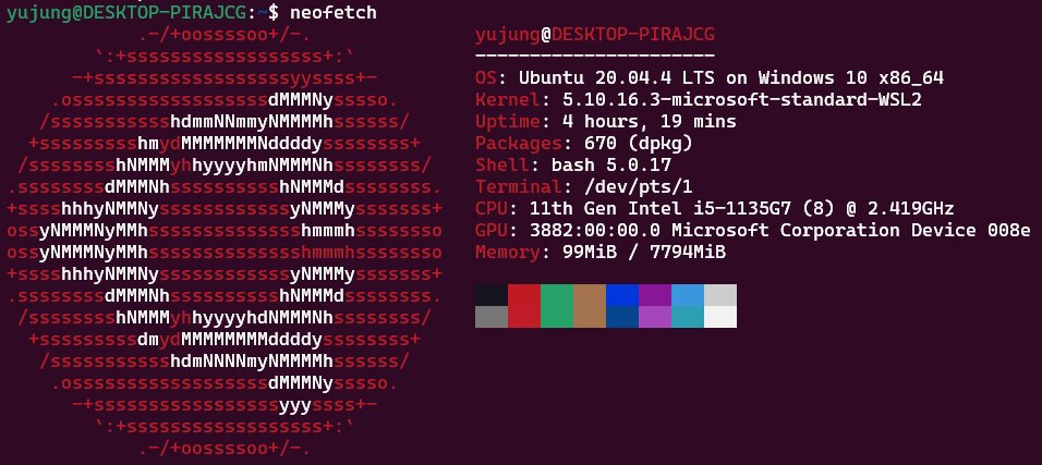 sudo apt install neofetch # Do you want to continue? [Y/N] : Y