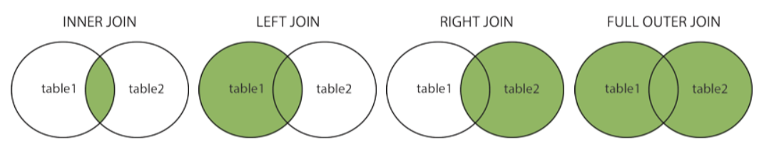 - FULL (OUTER) JOIN: Returns all records when there is a match in either left or right table