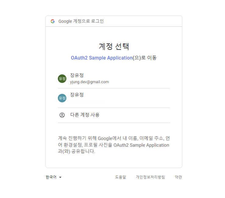 OAuth 2 의존성을 추가하고, 보호할 페이지와 Controller를 생성한 다음에 Spring Boot 자동 구성에 OAuth 2 로그인 활성화와 OAuth 2 클라이언트 등록 정보를 설정하면 간단하게 실습을 진행할 수 있다. 이렇게 쉽게(단순 구현만 했으니 당연함) 구글 로그인을 만들어낼 수 있다니 신기했다!
