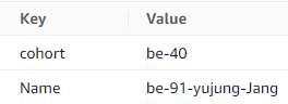 - 공용으로 할당된 cohort 태그, 개인 소유 리소스 식별을 위한 Name 태그 (인스턴스 이름에 적용)