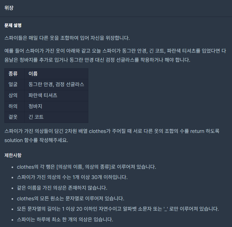 //옷의 종류를 Key로 하고, 해당하는 옷의 개수를 Value로 하는 Map을 생성한다