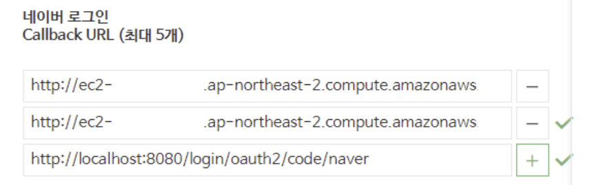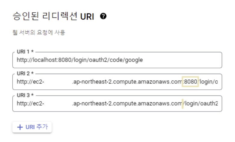 구글과 네이버에서도 변경된 주소를 등록한다. 기존에 등록한 리디렉션 주소에서 8080 포트를 제거하여 추가 등록한다.