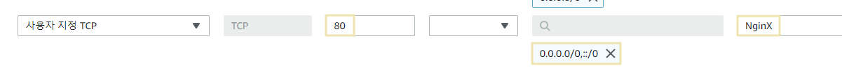 엔진엑스의 포트 번호(기본 80)를 보안 그룹에 추가한다. [EC2 → 보안 그룹 → EC2 보안 그룹 → 인바운드 편집]