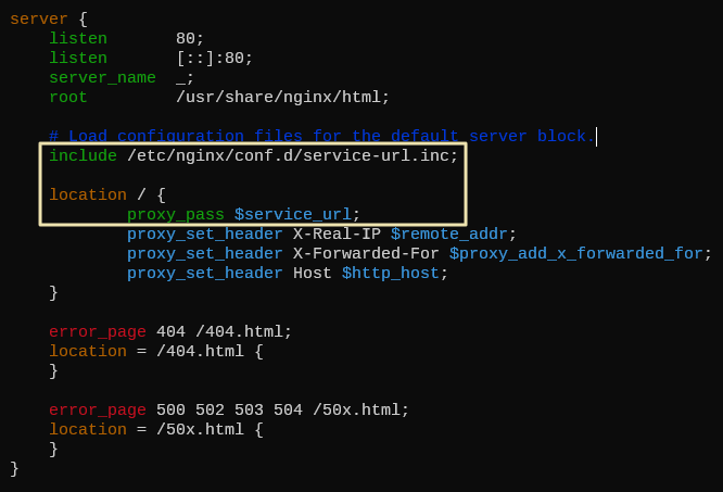 set $service_url http://127.0.0.1:8080; # 위 파일 내부에 작성