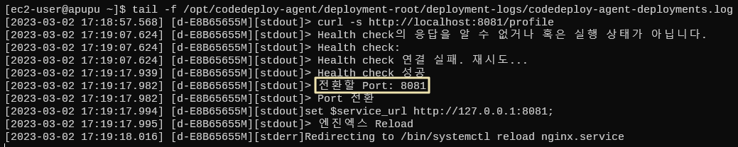 - health.sh: 'start.sh'로 실행시킨 프로젝트가 정상적으로 실행됐는지 체크