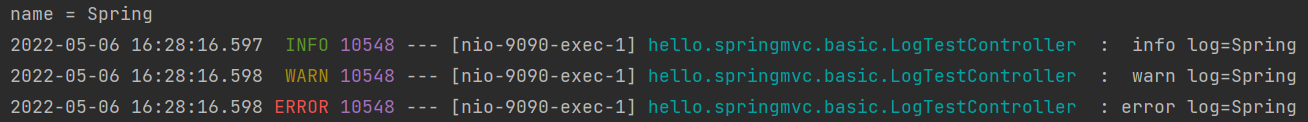 #hello.springmvc 패키지와 그 하위 로그 레벨 설정