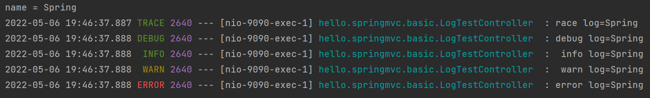 - LEVEL: TRACE > DEBUG > INFO > WARN > ERROR