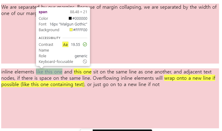 CSS 코드에서 실제 작동하지 않는 것: span